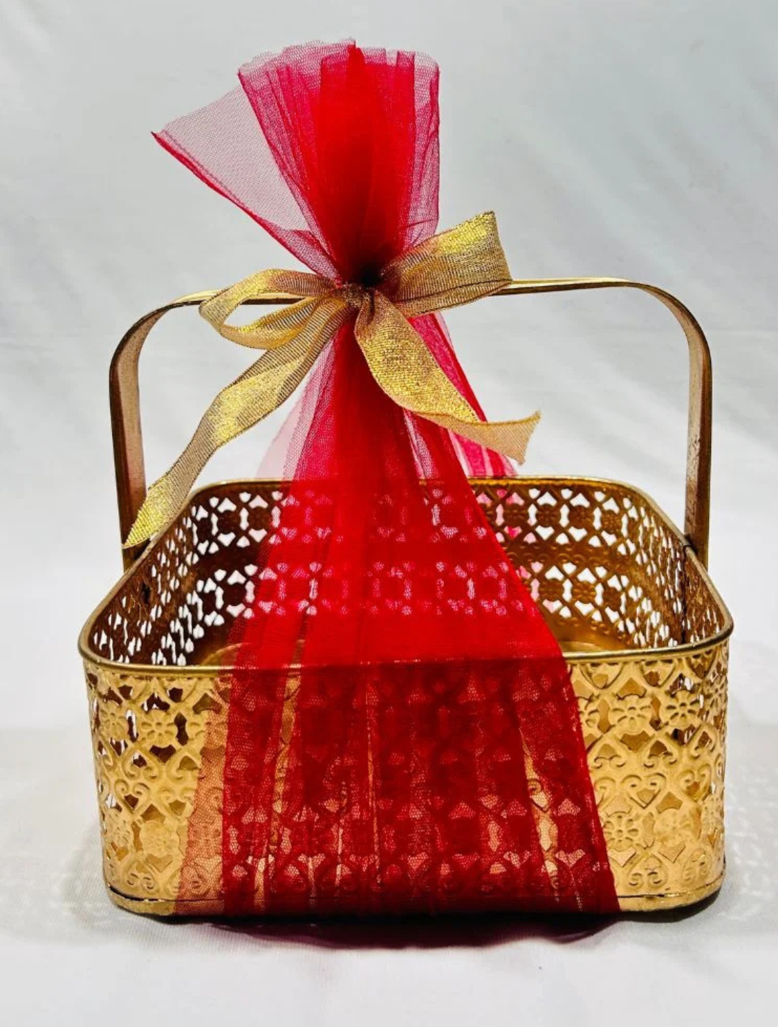 Versatile and Elegant Decorative Metal Basket for Gift Hampers and Trousseau Packing